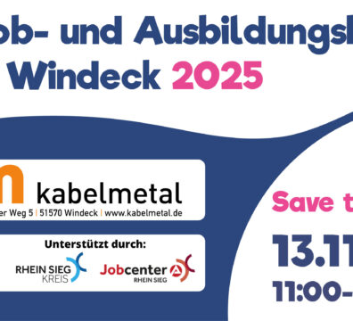 Die Windecker Wirtschaftsförderungs- und Entwicklungsgesellschaft mbH veranstaltete zusammen mit dem jobcenter rhein-sieg unter der Schirmherrschaft der Gemeinde Windeck die diesjährige Job- und Ausbildungsbörse (JAB). Über 40 Aussteller aus der Region